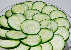 - يساعد الخيار في التقليل من الورم وعلاج الإجهاد حول العين، حيث توضع شرائح الخيار حول العينين (بعد غلقها).