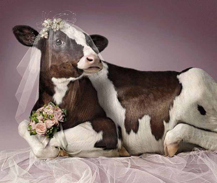 حضر الزوج مارتي لاندون وقبّل البقرة، قائلا: إنه أقدم على ذلك نيابة عن زوجته.