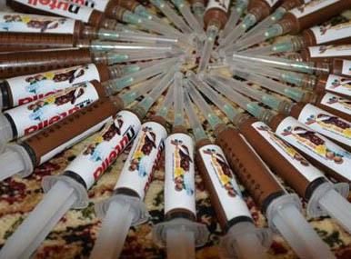 وتُظهر الصور، التي تم تداولها على نطاق واسع، مجموعة من الحقن مملوءة بمسحوق شوكولاته، وعليها العلامة التجارية الخاصة بماركة “نوتيلا”.
