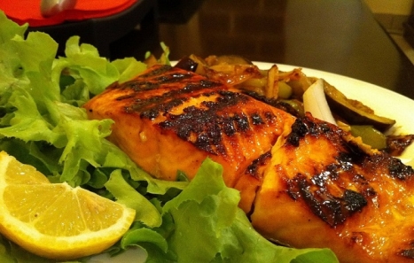 سمك السالمون والماكريل وغيرها من الأسماك الدهنية التى تحتوي على أحماض أوميجا 3، حيث إنها تعمل على الحفاظ على صحة القلب وحمايته من الجلطات، لذلك ينصح بتناول الأسماك مرتين على الأقل في الأسبوع.